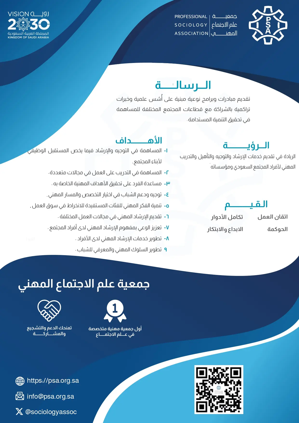 جمعية علمية مهنية واعدة في دعم التنمية الاجتماعية تتخذ من المبادرة وسرعة الاستجابة والابتكار منهج علمي يُمكّن أفراد المجتمع ومؤسساته من تحقيق رؤية المملكة العربية السعودية 2030.