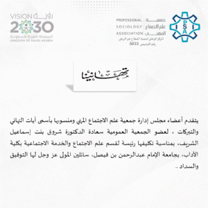 بحمدالله وتوفيقه تم نشر محاضر اجتماعات مجلس إدارة جمعية علم الاجتماع المهني كاملة لعام 2025 على الموقع الالكتروني للجمعية من خلال الدخول على القائمة الرئيسية واختيار الحوكمة ثم مجلس الإدارة ومن ثم محاضر مجلس الإدارة .. نشكر ونقدر بهذه المناسبة، المجهود الذي بذل من قبل أعضاء مجلس الإدارة .. وفقهم الله لكل خير وجعل أعمالهم خالصة لوجه الكريم، ونفع الله بها المجتمع السعودي الوفي ،،،